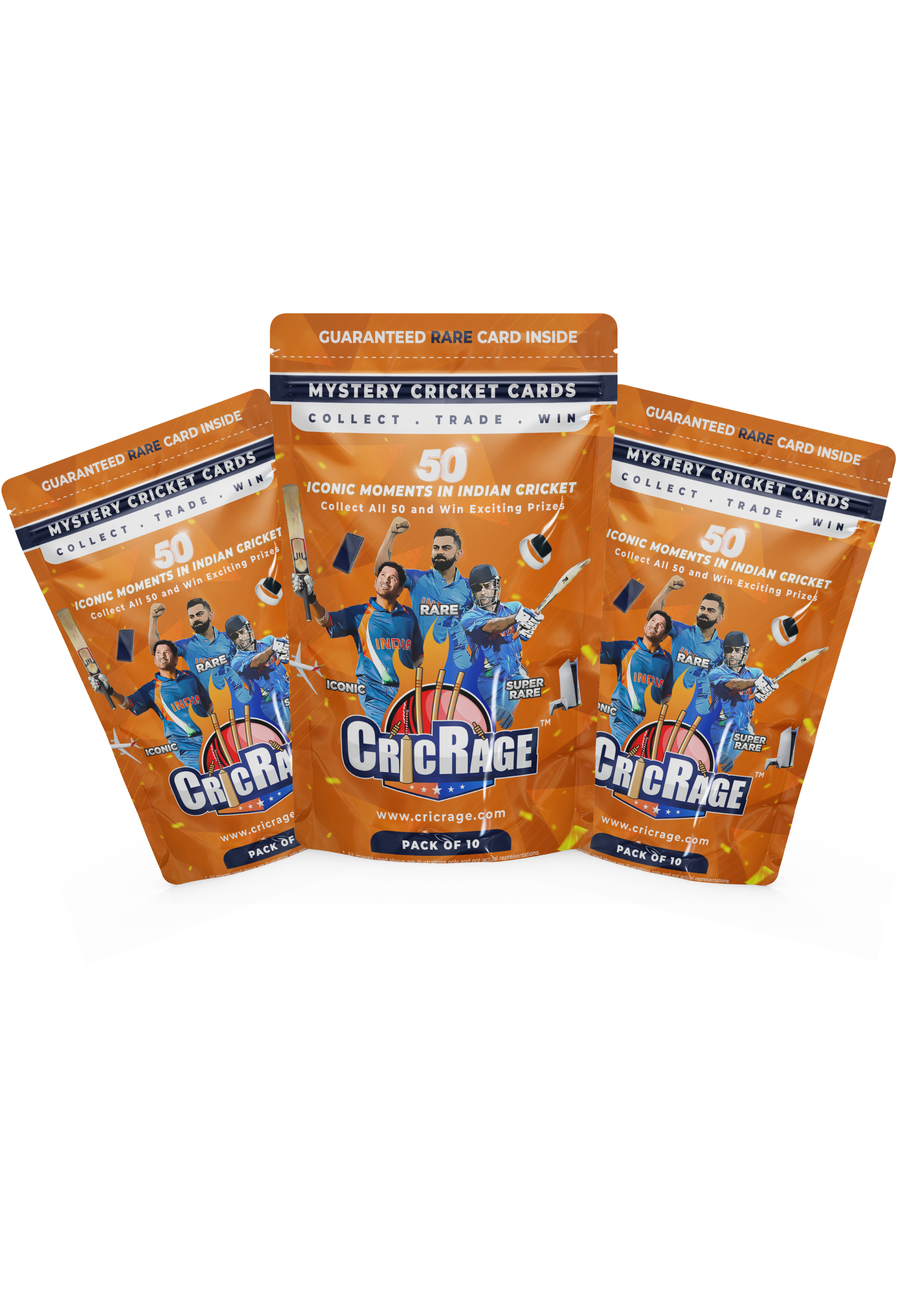 Level up your collection with this CricRage Combo Pack β get 3 packs of 10 cards each, for a total of 30 limited edition cards featuring iconic moments from Indian cricket history! π